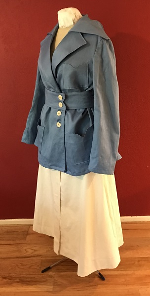 Reproduction 1916 Blue Suit Jacket Front. Reproduction 1916 Blue Suit Jacket Left Quarter View. Reproduction 1916 Blue Suit Jacket Left. Reproduction 1916 Blue Suit Jacket Back. Reproduction 1916 Blue Suit Jacket Right. Reproduction 1916 Blue Suit Jacket Right Quarter View